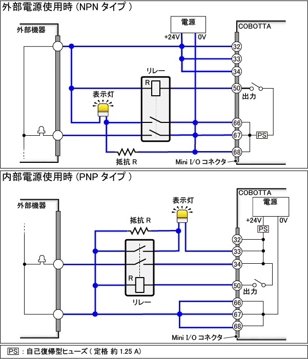 (ただし、下図の回路例では、起動権の設定がTPに設定されている場合、モータの状態に連動して、表示灯が点灯しません。)
