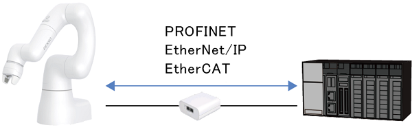 フィールドネットワークインターフェースモジュールとは、Mini I/OのI/O点数だけでは足りない場合や各種フィールドネットワークでCOBOTTAを制御したい場合に使用するオプション機器です。