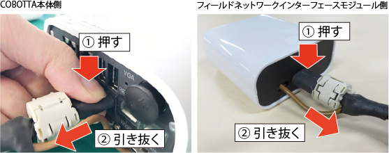 - COBOTTAやフィールドネットワークインターフェースモジュールとの接続または取り外しを行う際は、必ずCOBOTTAの電源を切ってから行ってください。