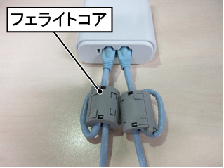 - ノイズの強い環境では、フィールドネットインターフェースモジュールが正常に動作しない恐れがあります。ノイズ対策として、フェライトコア (TDK株式会社 : ZCAT3035-1330相当) にLANケーブルを2ターンさせてください。フェライトコアはお客様にて別途ご用意ください。