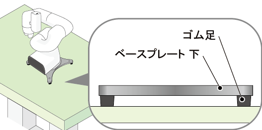 ゴム足とベースプレート 下の間に隙間が生じた場合は、ゴム足を軽く押し込み、隙間を無くした状態でご使用ください。