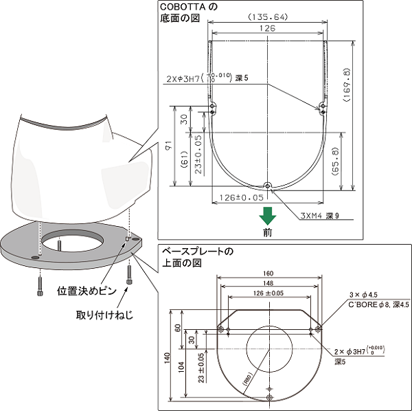 - ベースプレート 上をCOBOTTAへ組付ける方法