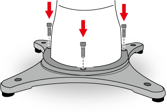ベースプレート 下を架台に固定する場合は、ベースプレート 下のゴム足を取り外してください。ゴム足を取り外した後、架台に固定用ねじで固定します。