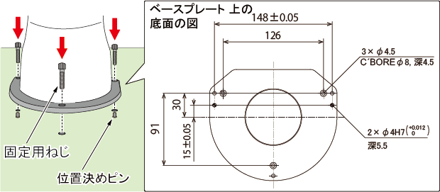位置決めピンは、お客様にて別途ご用意ください。