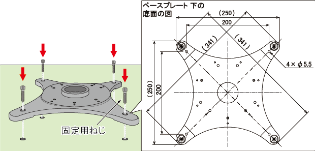 ベースプレート 上を架台にねじで固定する