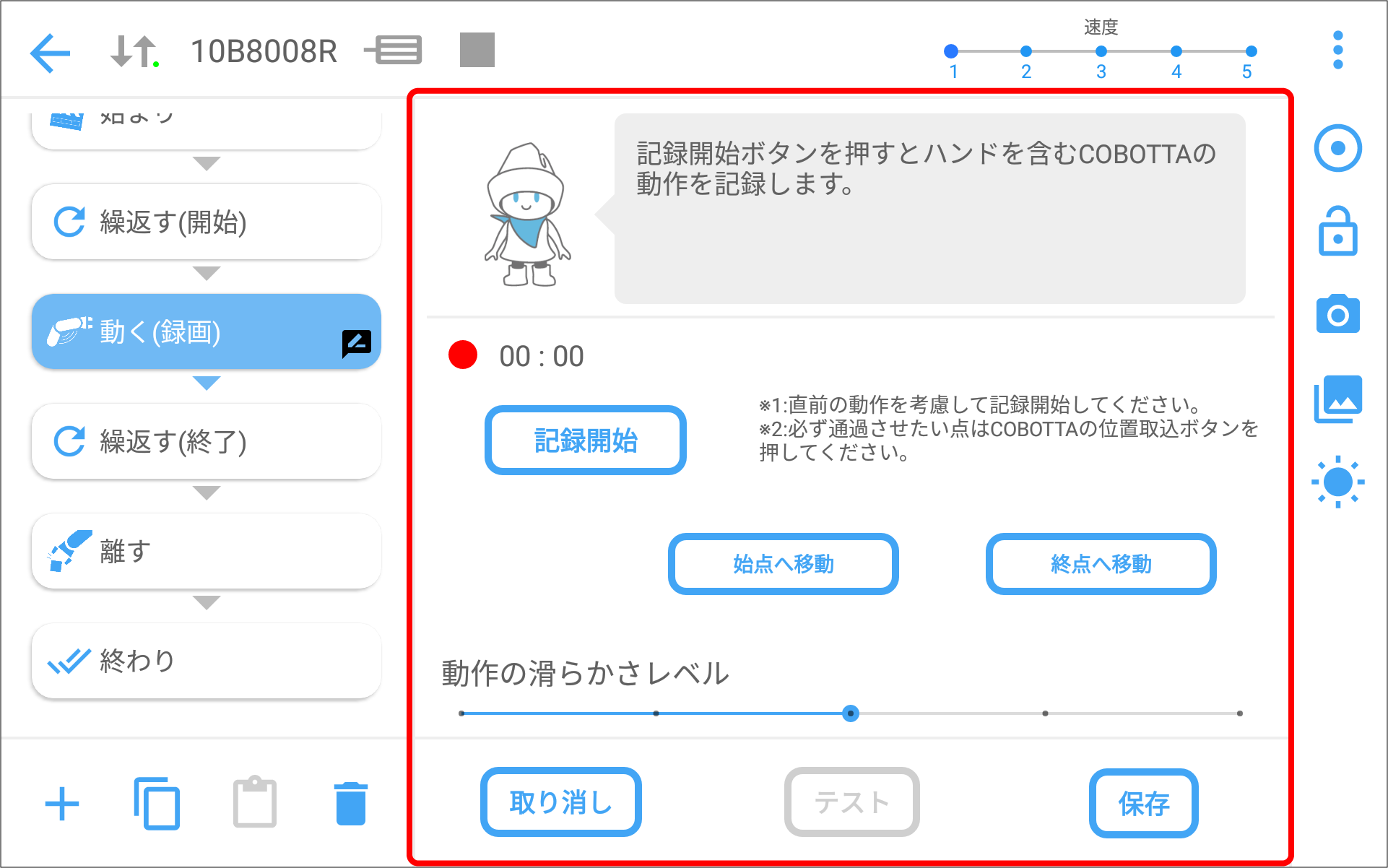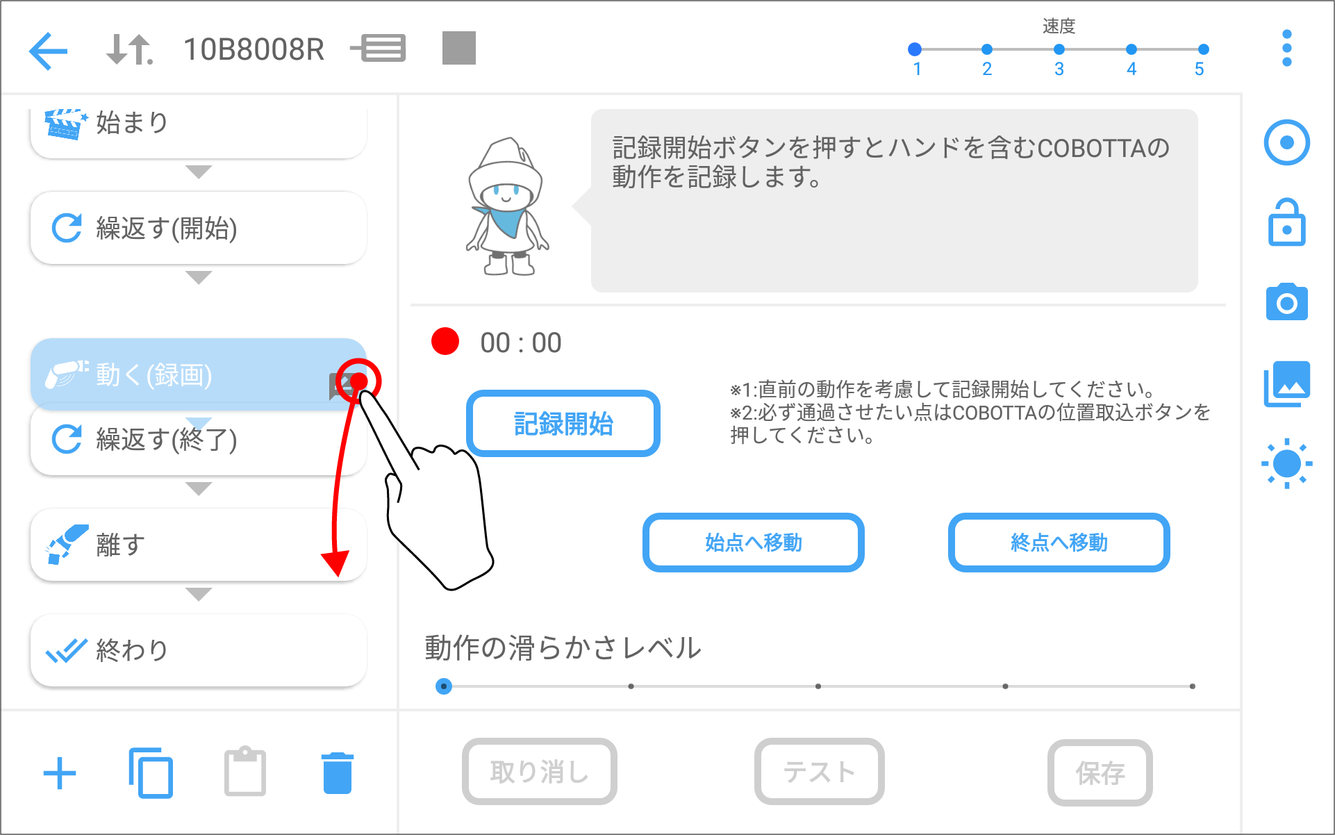 | 動く (録画) | COBOTTAが記録した動作を再生します。 | |