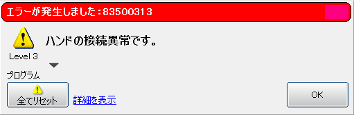 上記のメッセージが表示される場合は、下記の手順でハンドパラメータの設定を変更してください。