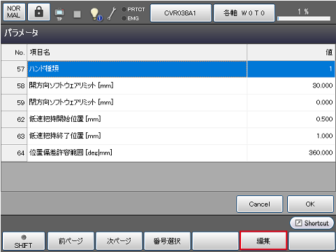 [57 : ハンド種類]を選択し、[F5 編集]ボタンを押します。