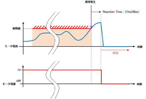 各軸のトルクを監視し、制限値を超えたらモータ電源をOFFする機能です。