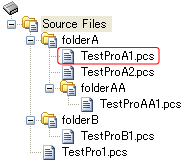 下記のフォルダ構造の場合を例にTestProA1に記載するファイル指定の例を説明します。