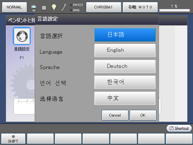 TPで表示する言語を設定します。