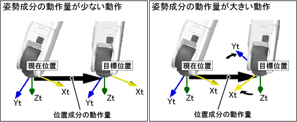 - 設定値 : 1の時と基本的に同じですが、姿勢成分の動作時間が位置成分の動作時間に間に合わない場合、実際の動作時間は、設定値 : 1の時より短い時間、もしくは、同等となります。