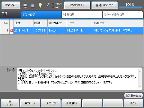 また、ログに記録された過去のエラー履歴をリモートTP/バーチャルTPの画面上で確認することができます。