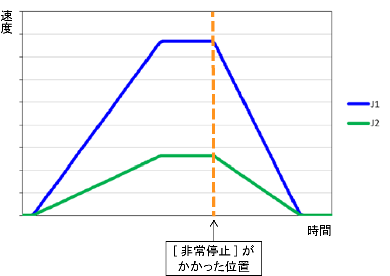 全軸が同期して、同時に停止します。予定していた軌道上に停止します。