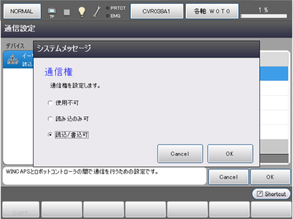通信権の意味は以下のとおりです。EtherNetを使用するときは、[読込/書込可]を選択する必要があります。