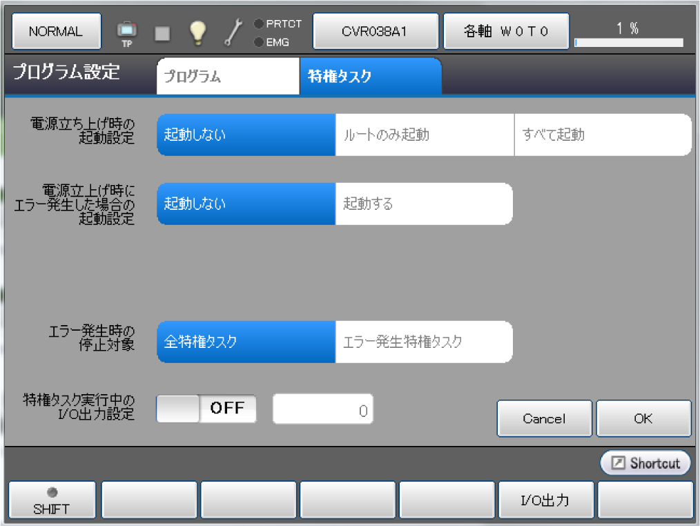 操作経路:[F1 プログラム] - [F6 補助機能] - [F1 プログラム設定] - [特権タスク タブ]