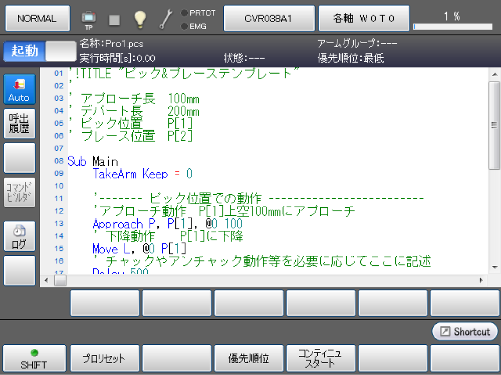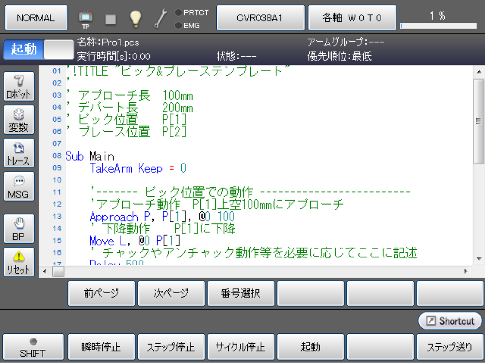 | [F6 ステップ送り] | 選択したプログラムを「1ステップ起動」します。 |