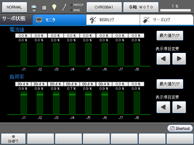 操作経路:[F2 アーム] - [F3 サーボ状態] - [モニタ タブ]