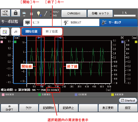 ログの波形から周波数を算出するために使用します。 詳しくは下記を参照してください。 (この機能はVer.2.9.*から使用可能です。) |