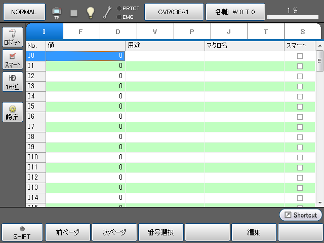 操作経路:基本画面 - [F3 変数]