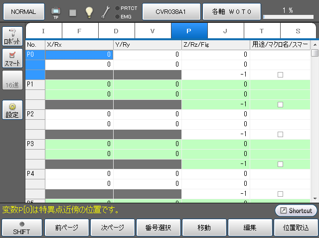 | [F11 ロボット] | 画面の右側にロボットの現在位置情報を表示します。 |