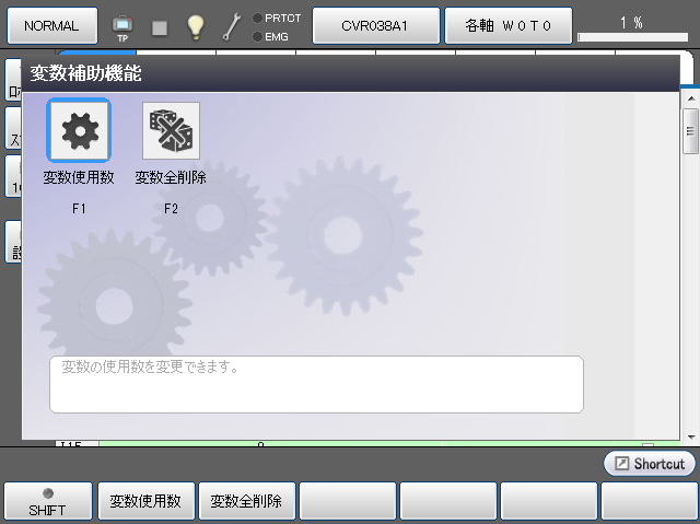 [F12 補助機能]を押すと、次のような[変数補助機能]ウィンドウが表示されます。