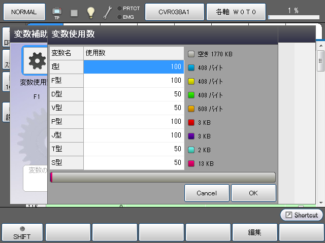 操作経路:[F3 変数] - [F12 補助機能] - [F1 変数使用数]