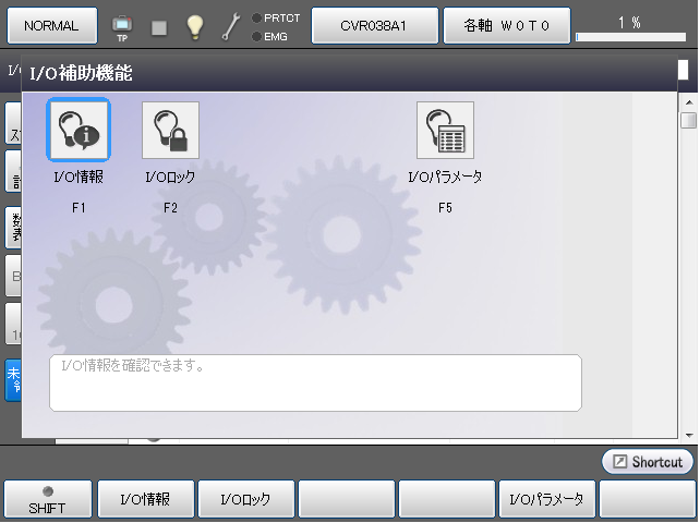 | [F1 I/O情報] | I/O情報を表示します。 |