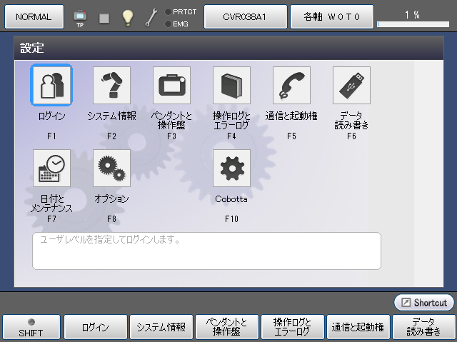 | [F1 ログイン] | ユーザレベルの切り替えを行います。 |