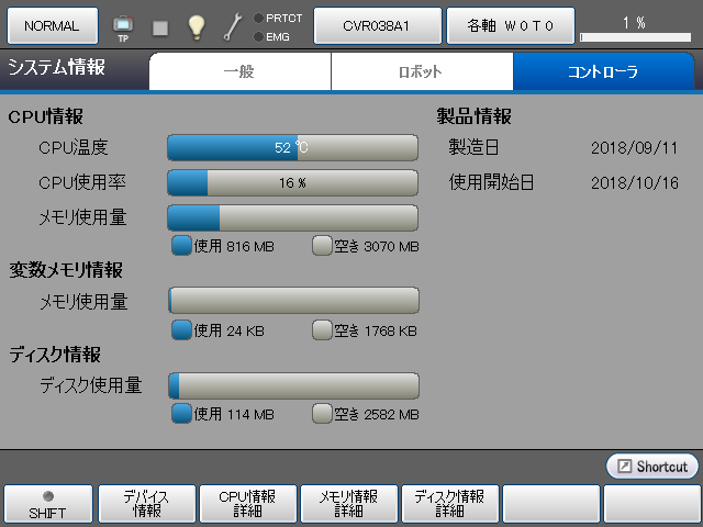 操作経路:[F6 設定] - [F2 システム情報] - [コントローラ タブ]