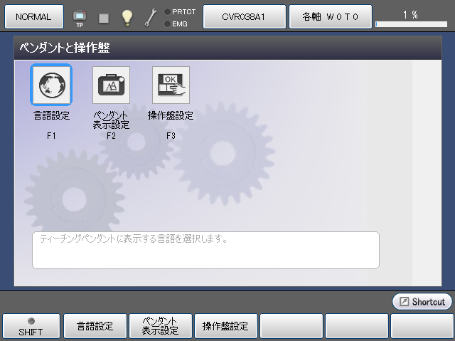操作経路:[F6 設定] - [F3 ペンダントと操作盤]