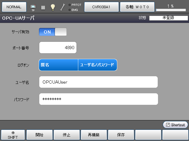 OPC-UAサーバの起動、停止、再構築や保存を行います。