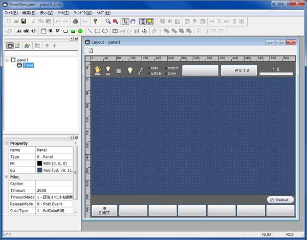 - 「操作盤エディタ」の操作方法については、操作盤ガイドの「PanelDesigner」を参照してください。