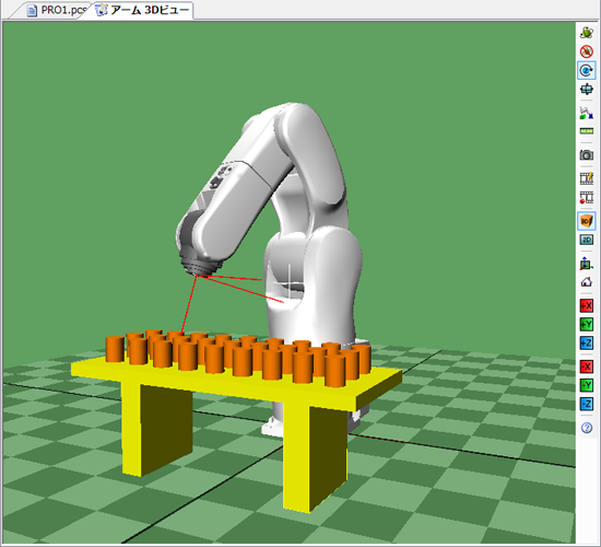 「アーム3Dビュー」にパレット台やパレット、ワーク等を配置します。