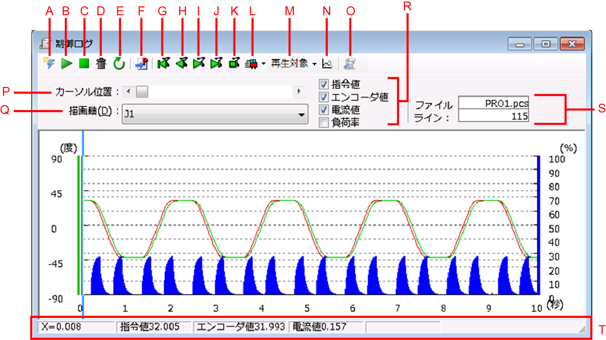 J:「制御ログ動作再現(ステップ送り)」ボタン