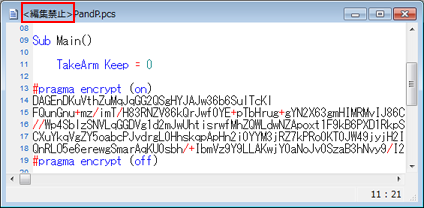[プロジェクト]メニューから[プログラムの編集禁止]-[編集禁止 設定]を選択します。