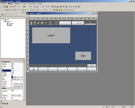 PanelDesignerを起動し、画面にラベル1個とボタン1個を配置します。