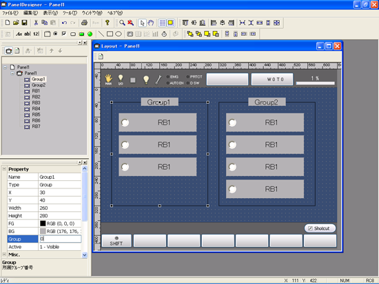 グループはラジオボタンの排他を実現するために、ラジオボタンのグループ化を行う部品です。