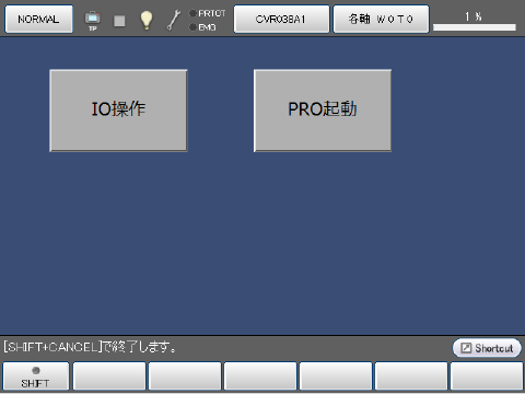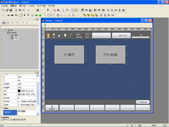 ここでは押されたときにIO24番をONし、離されたときにOFFするプッシュボタンと、押されたときにプログラム(Sample pro)を起動するプッシュボタンを作成する方法を説明します。