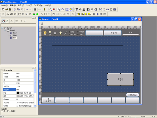 ボタンと同様にPanelDesignerを起動し、画面に直線を描画します。