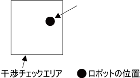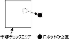 ロボットが干渉チェックエリアに侵入しエラーが発生する。
