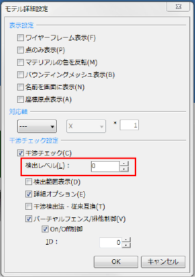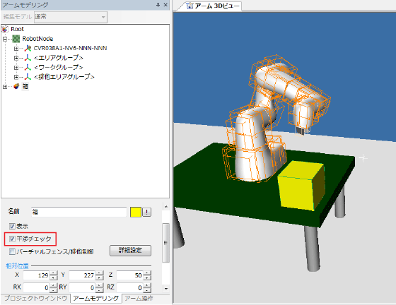対象のオブジェクトを選択し、「干渉チェック」を有効にします。
