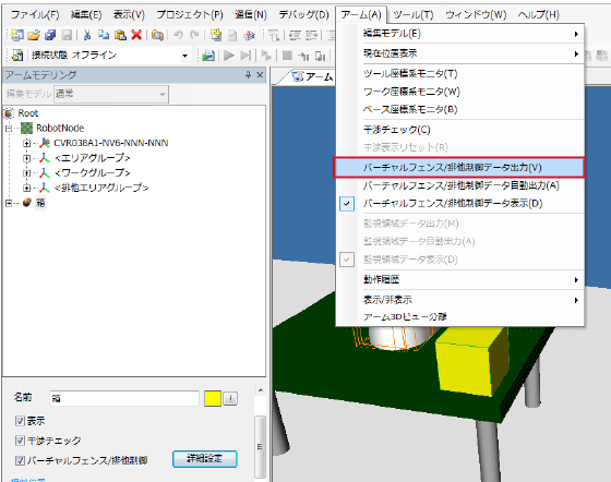 メニュー[アーム] - [バーチャルフェンス/排他制御データ出力(V)]