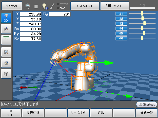 リモートTP/バーチャルTPでアーム画面を開きます。