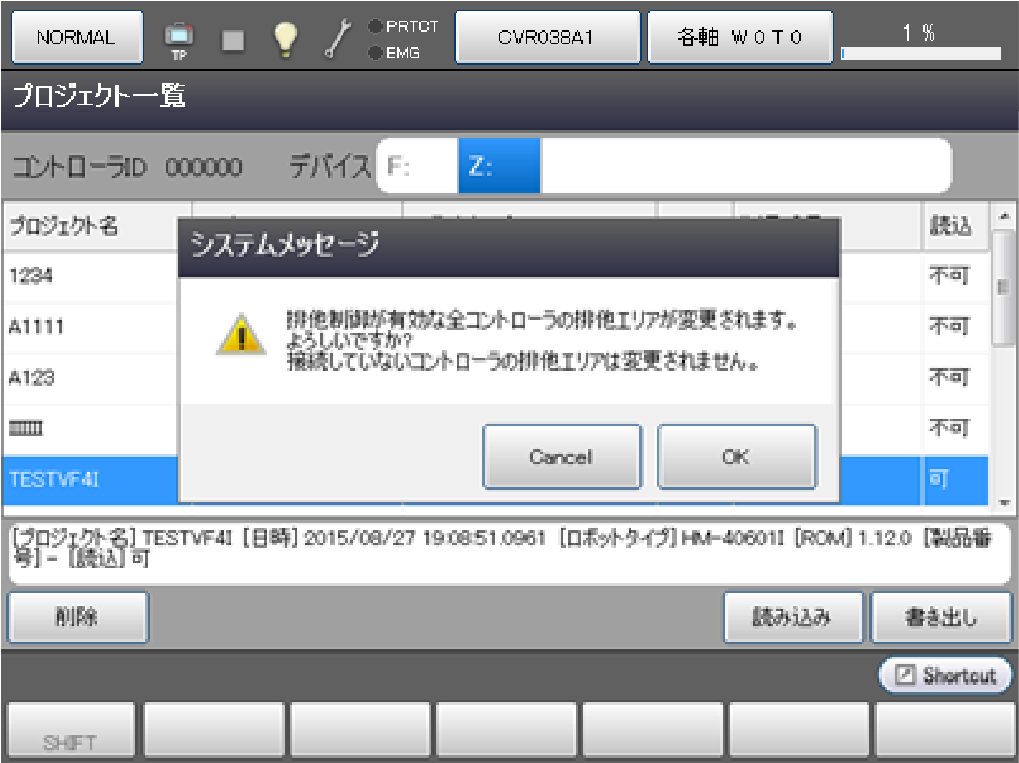 操作経路 : [F6 設定] - [F6 データの読み書き] - [F1 プロジェクト読み書き]