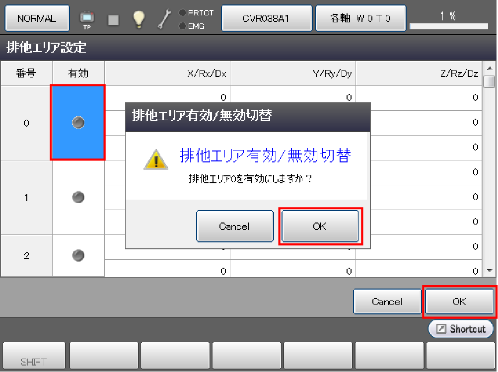排他エリア設定画面の[OK]を押すと値が更新されます。