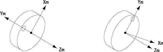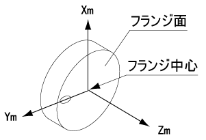 Zm:フランジ面に垂直な軸 Ym:フランジ中心からφ3H7の中心を通る軸 Xm:Zm、Ymに垂直な軸 |