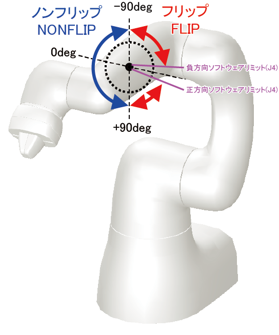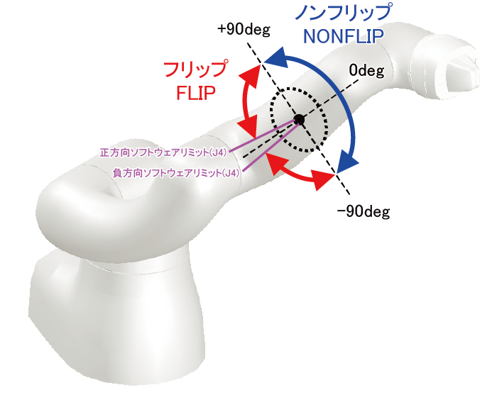 レフティーかつアバッブ、あるいはライティーかつビローの場合、第4軸角度が±90deg以内のときはノンフリップ、±90deg以外のときはフリップです。