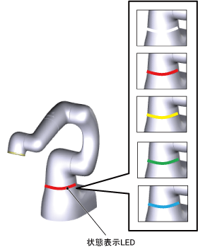 - LEDはCOBOTTAの状態をお客様が確認するうえで重要なため、日常点検の際にLEDの発光状態をご確認ください。確認方法は"状態表示LEDの確認方法"を参照してください。