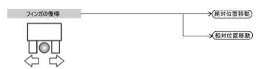 アンチャック動作は、単純にフィンガの位置を絶対位置または現在位置からの移動量で指定し、その位置になるように動作させます。指定位置に到達するとフィンガが停止します。